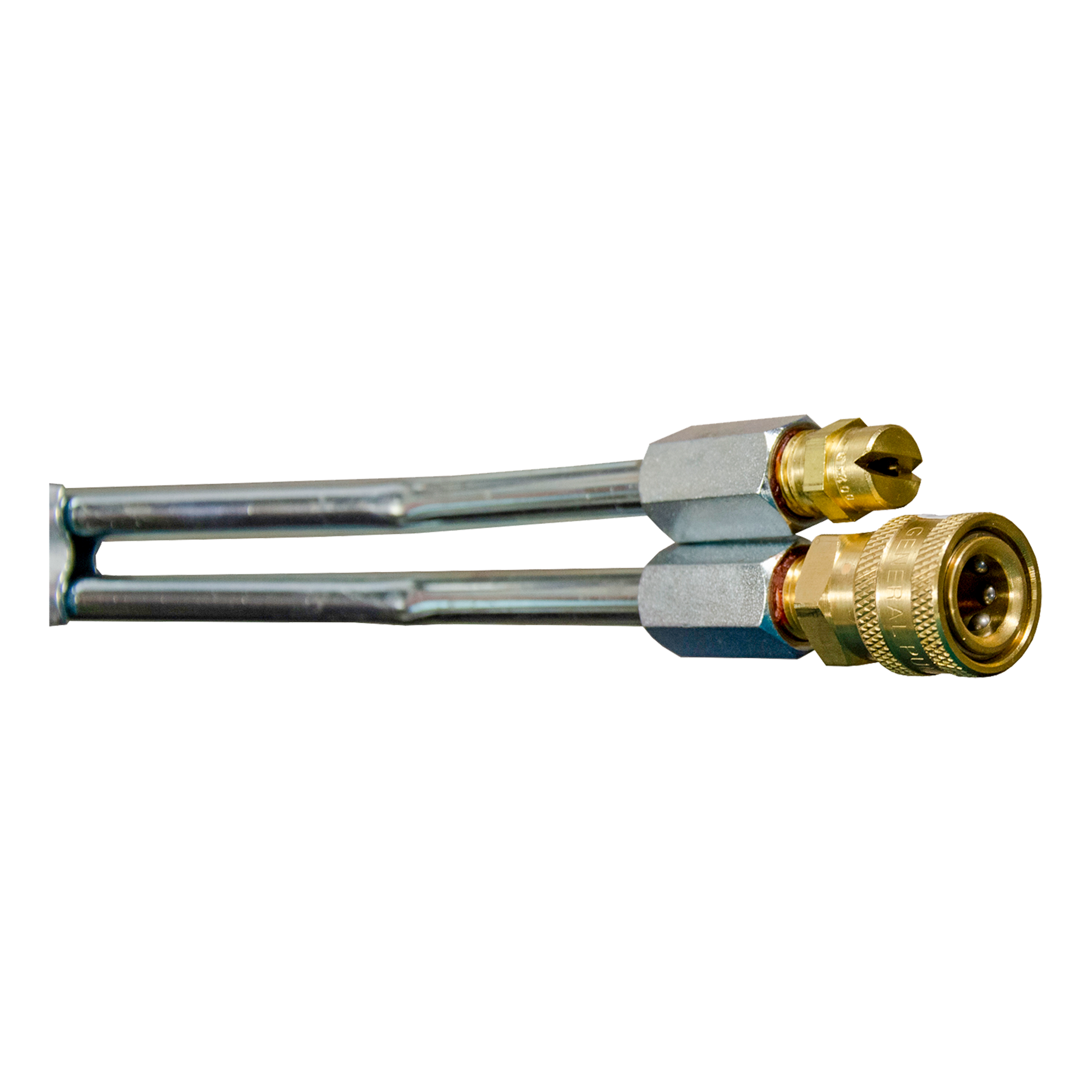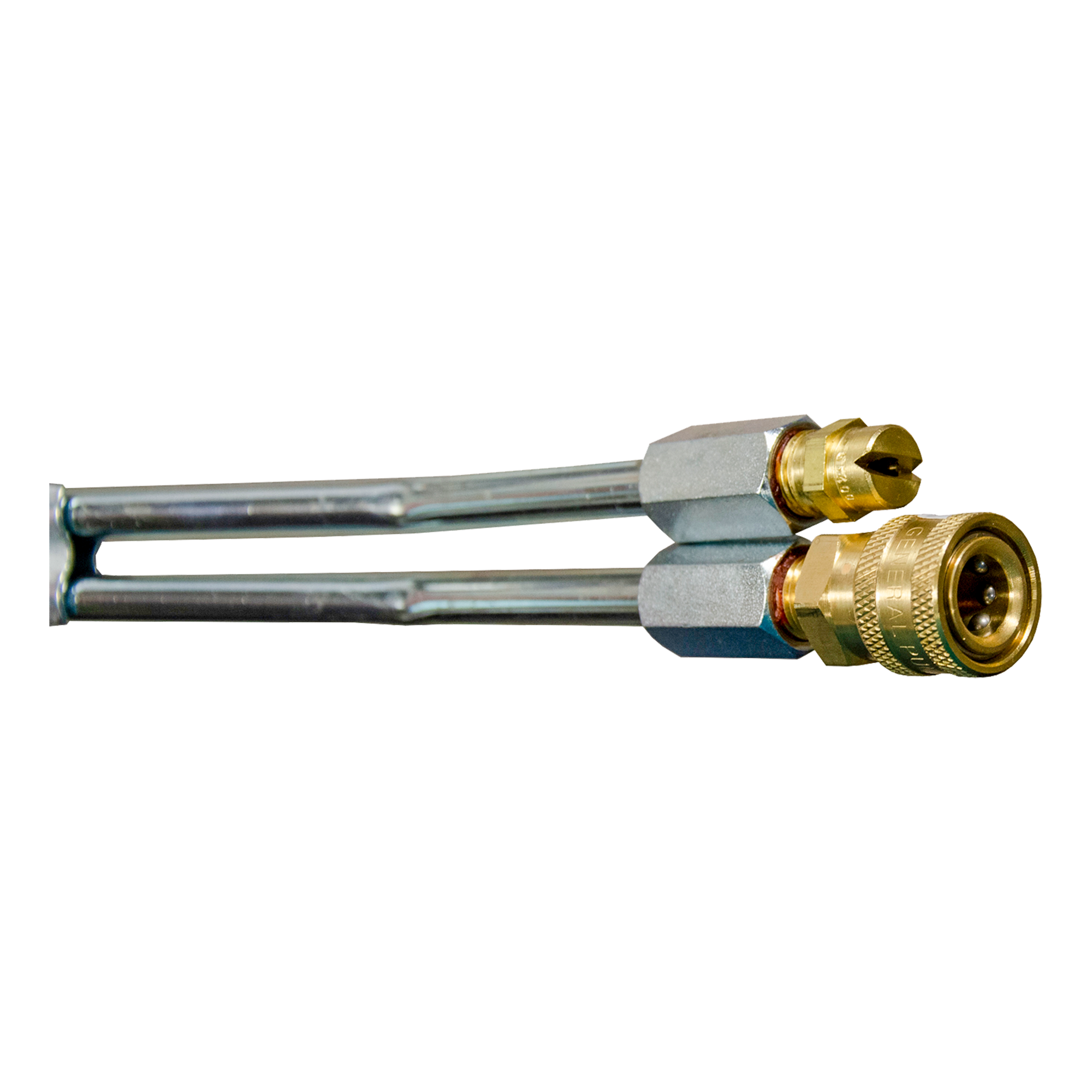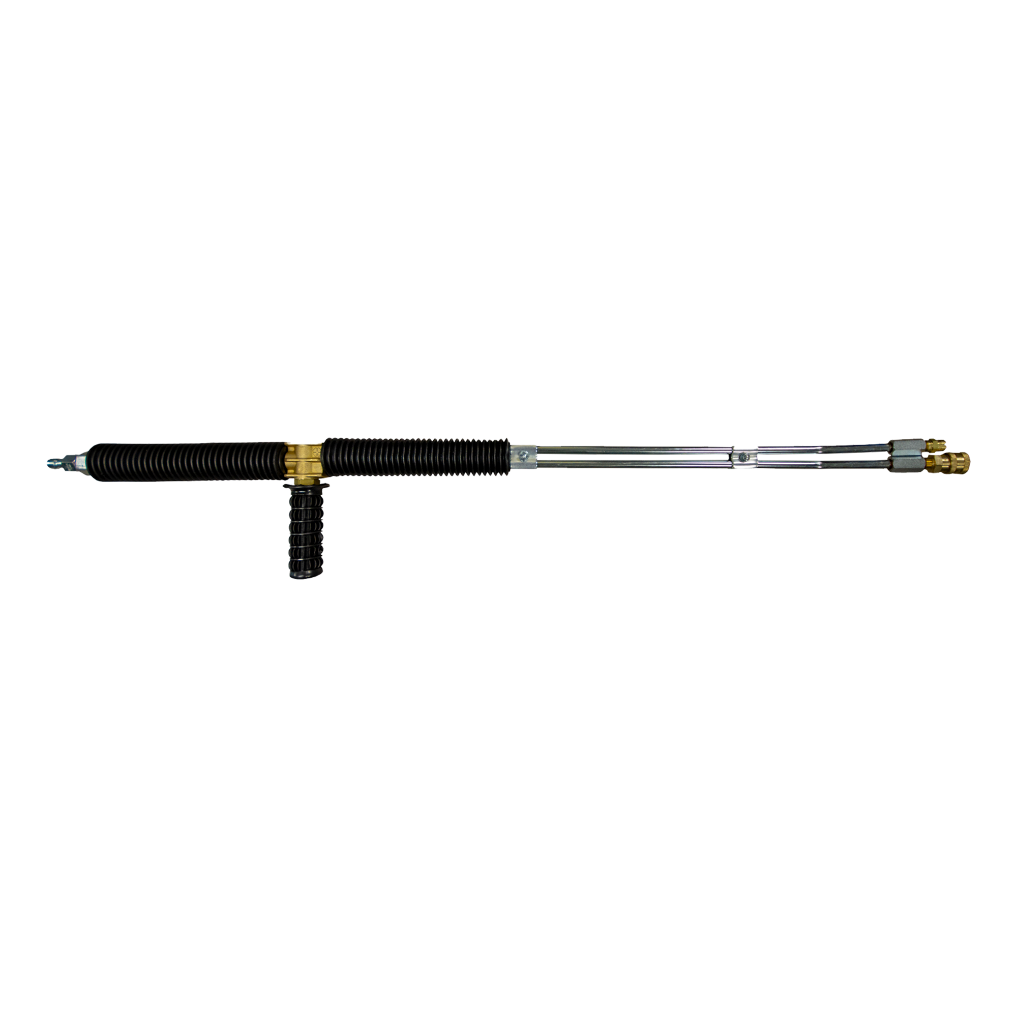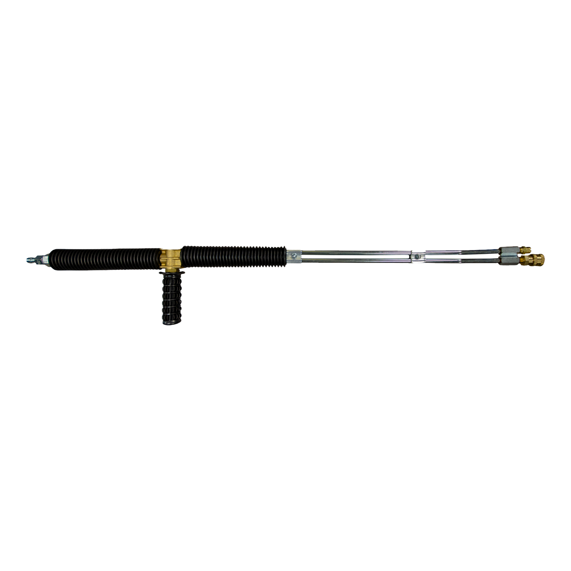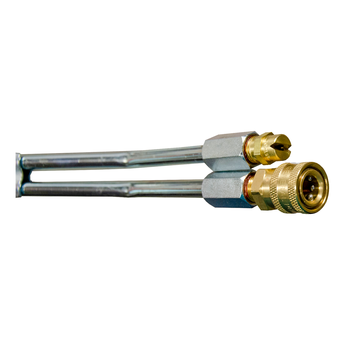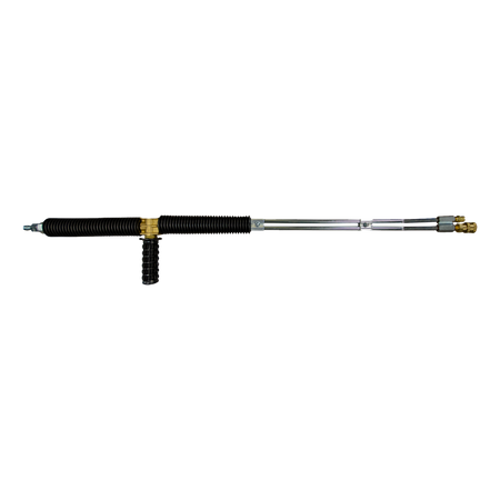 Lances doubles deluxifiées équipées d'une prise à connexion rapide sur la sortie haute pression et d'une buse à savon sur la sortie basse pression.