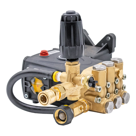 Ships with unloader, thermal relief valve, bypass hose, garden hose fittings, and quick connect socket.
